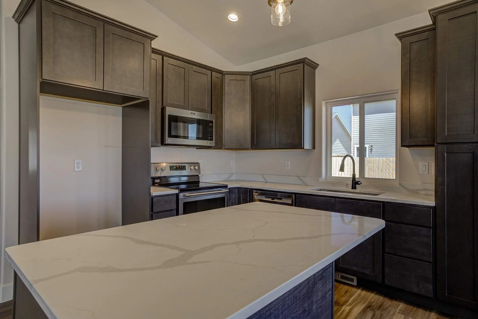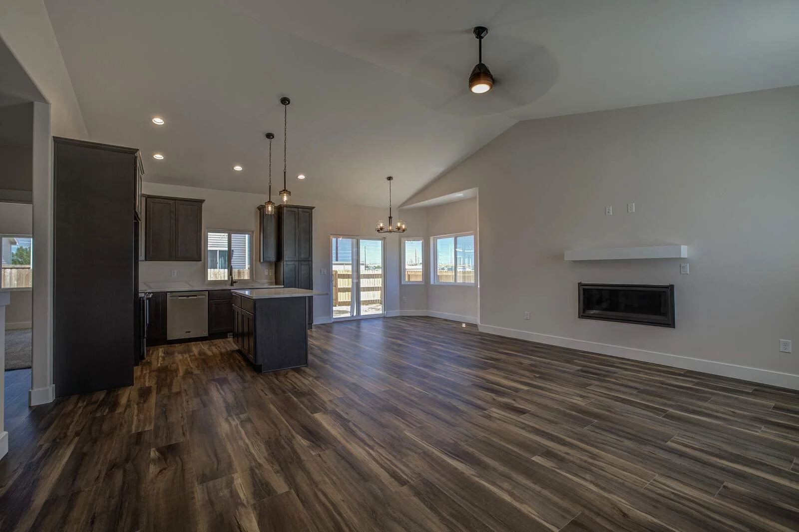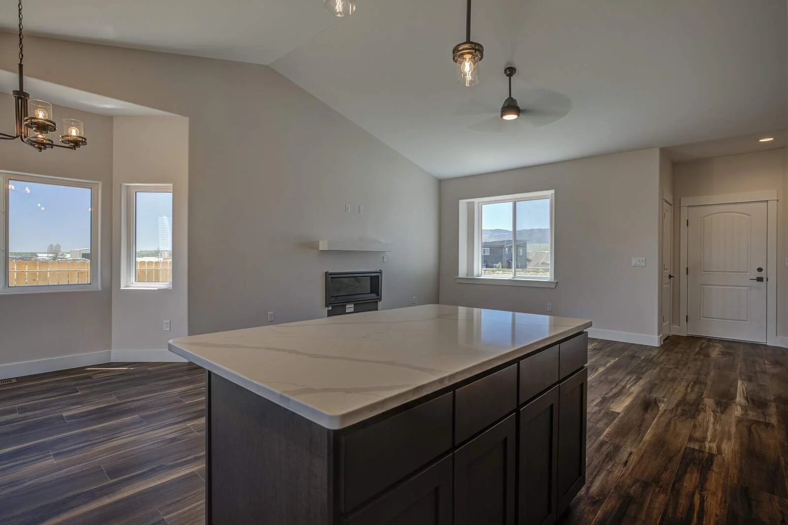 Open-concept floor plan with vaulted ceilings
