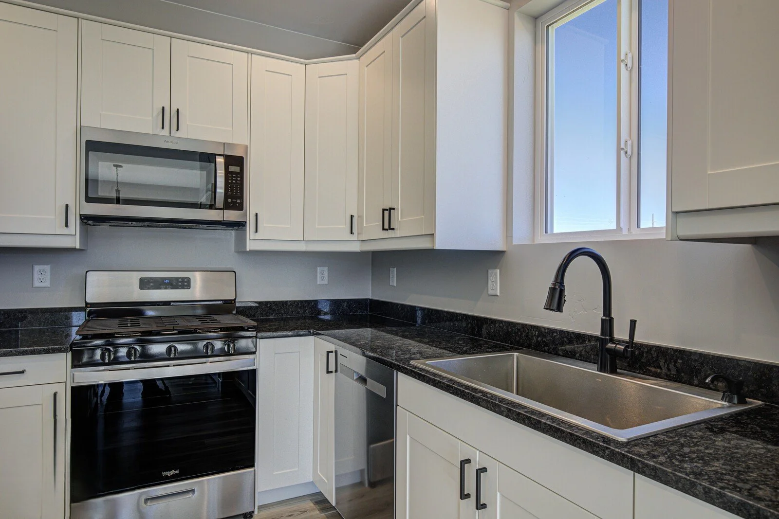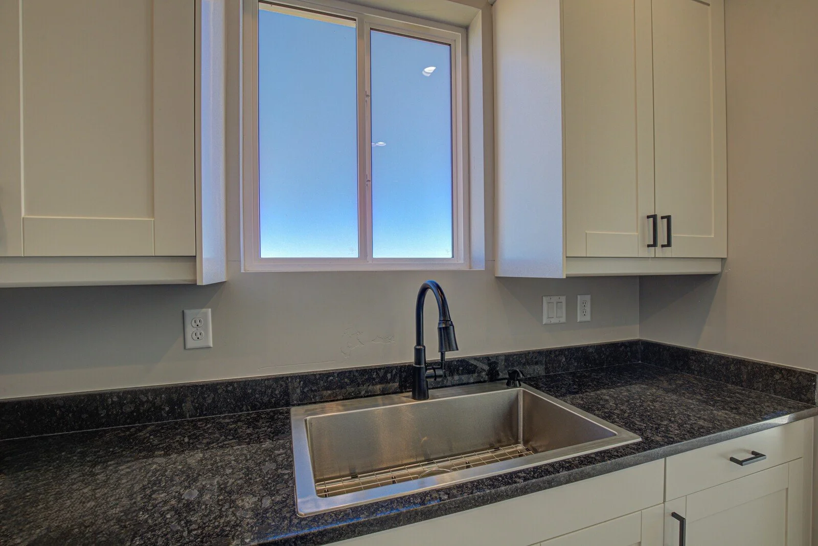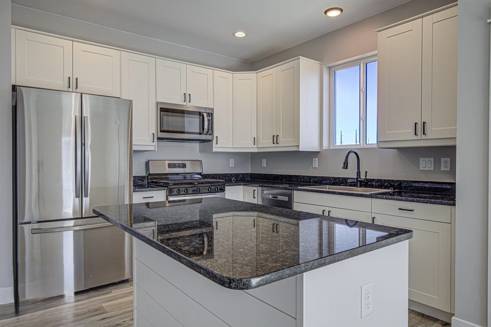 Chef’s kitchen with granite countertops & backsplash