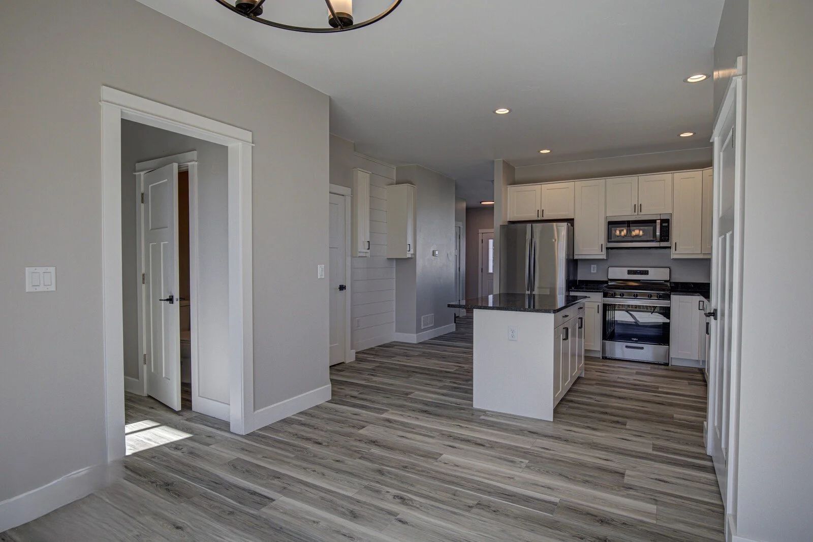Open-concept living with spacious kitchen & dining area